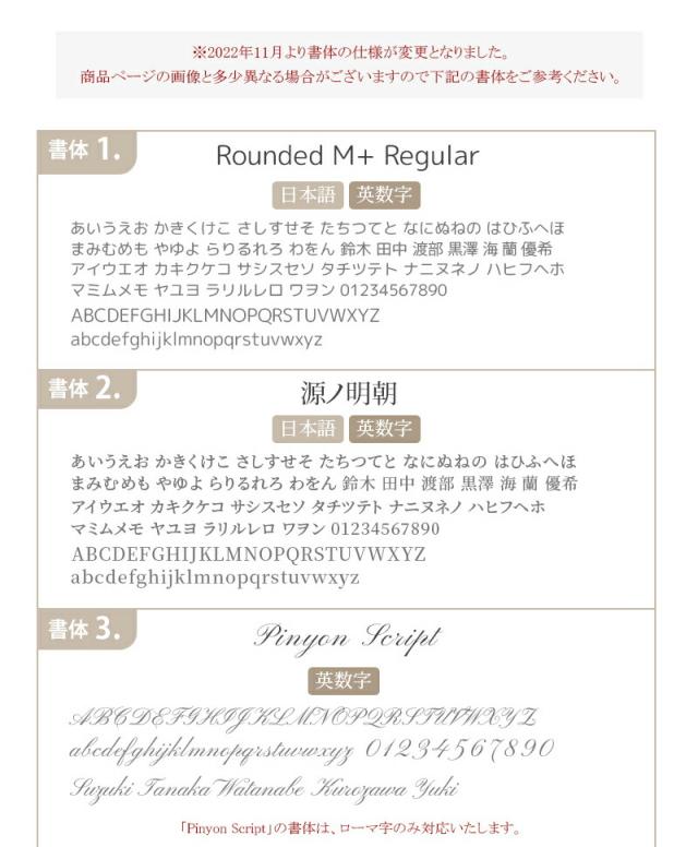 ![]() PCサイズ・1行刻印 2,700円 | ![]() PCサイズ・2行刻印 2,980円 | ![]() PCサイズ・上下1行ずつ刻印 2,980円 |