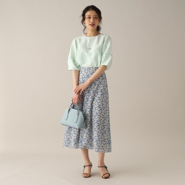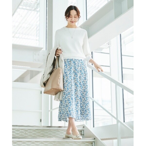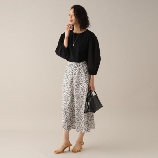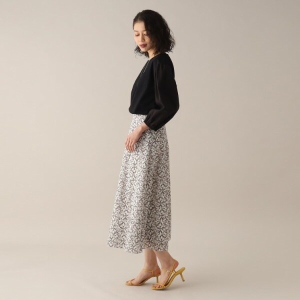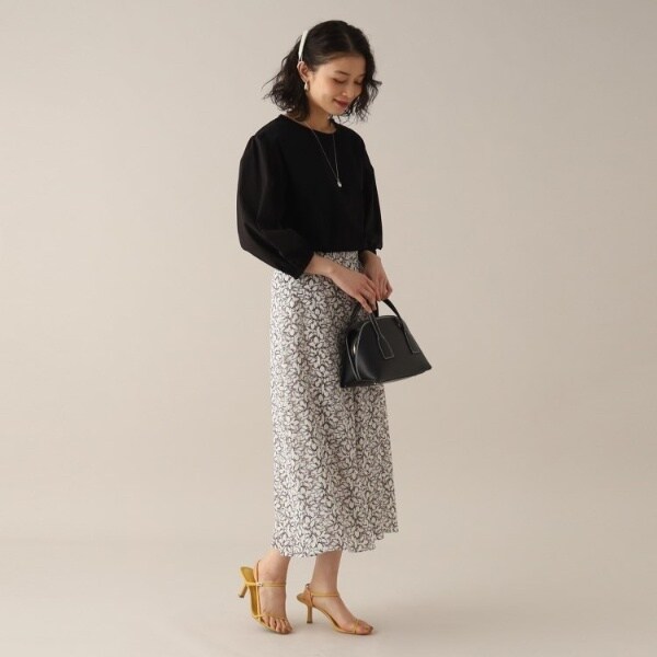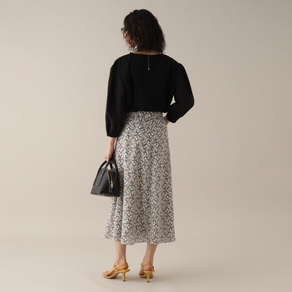 幾何柄調のフラワープリントのスカート。