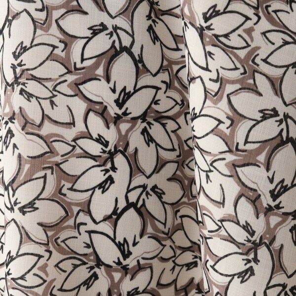 肌離れが良く、適度な透け感のあるポリエステル100%の素材に、フラワープリントを施した素材。
