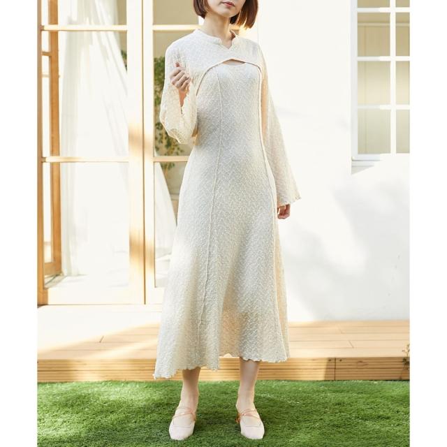 デコルテのカッティングにこだわった今年らしい肌みせが叶うワンピース。