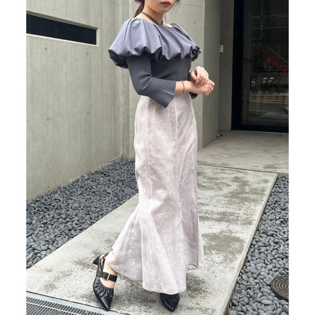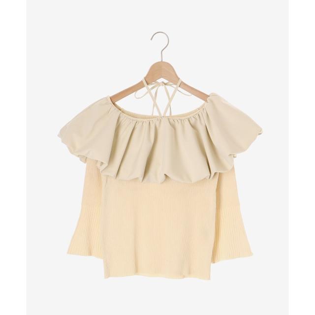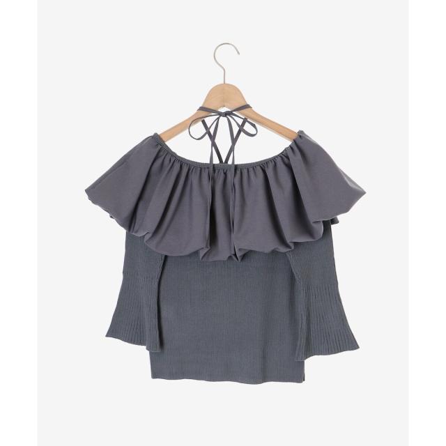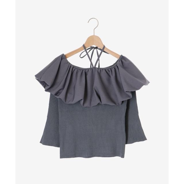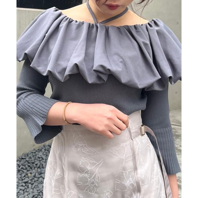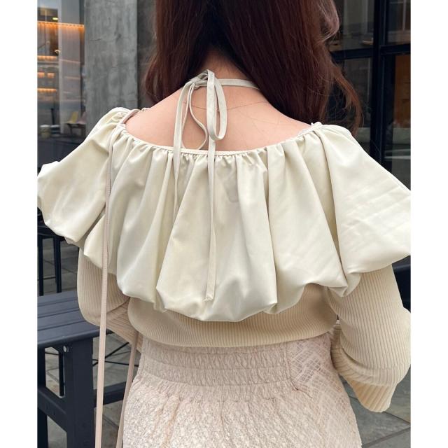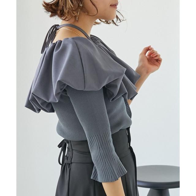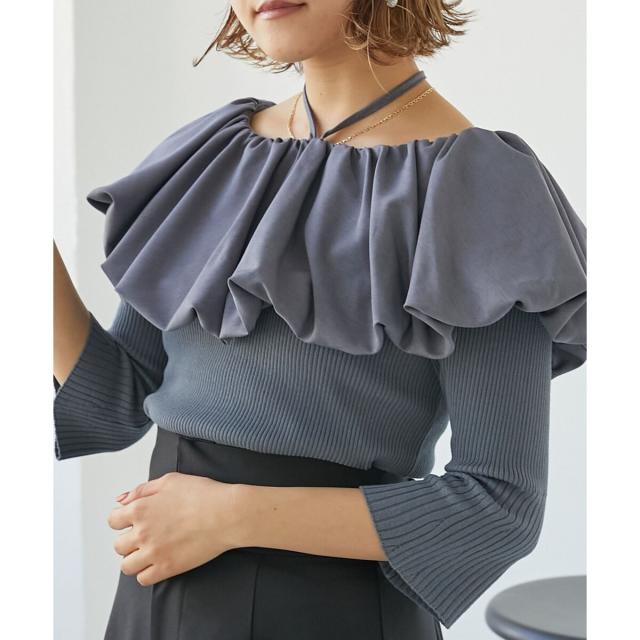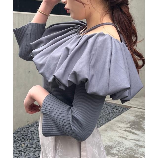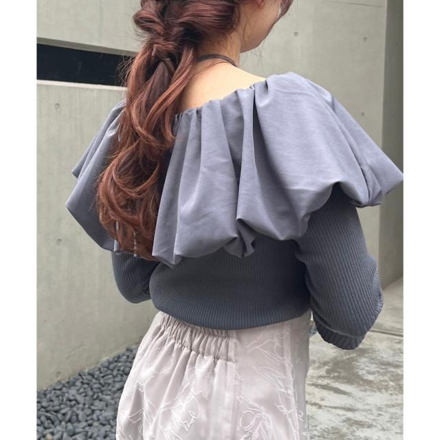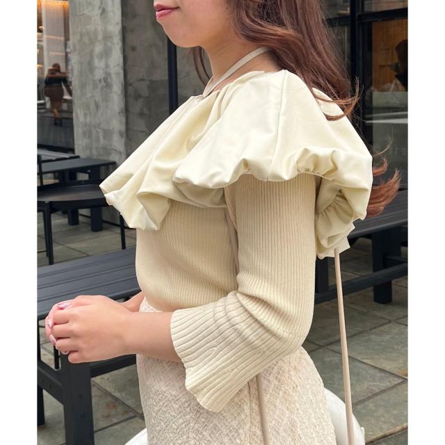 トレンドのバルーンデザインを襟周りに施したリブニット。