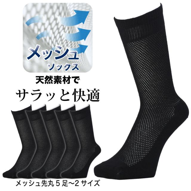靴下 メンズ 5足組 綿麻 ビジネスソックス 先丸 メッシュ 夏用 蒸れない 涼しい シャリ感 吸汗 速乾 丈夫 紳士 黒 紺 ワークソックス PAX-ASIAN 593 25-27cm