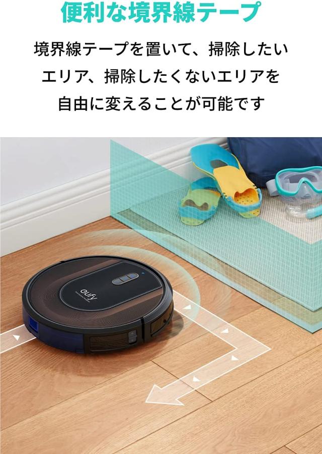 境界線テープを置いて、掃除したいエリア、掃除したくないエリアを自由に変えることが可能です。