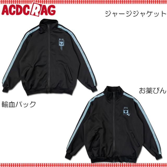 ACDC RAG エーシーディーシーラグ 輸血/薬瓶 ジャージジャケット ブラック/P.ブルー ジャージ トラックジャケット ブルゾン 長袖 原宿 韓国 原宿系 ファッション