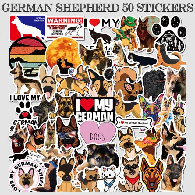ジャーマン シェパード ドッグ ステッカー 50枚セット PVC 防水 シール シェパード 犬 いぬ イヌ ペット スーツケース MacBook