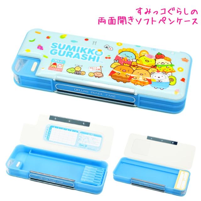筆箱 小学生 ソフト ペンケース 女の子 向け すみっコぐらし たべものおうこく ブルー PT10902 両面開き 一年生 二年生 新入学 新学期 プレゼント サンエックス