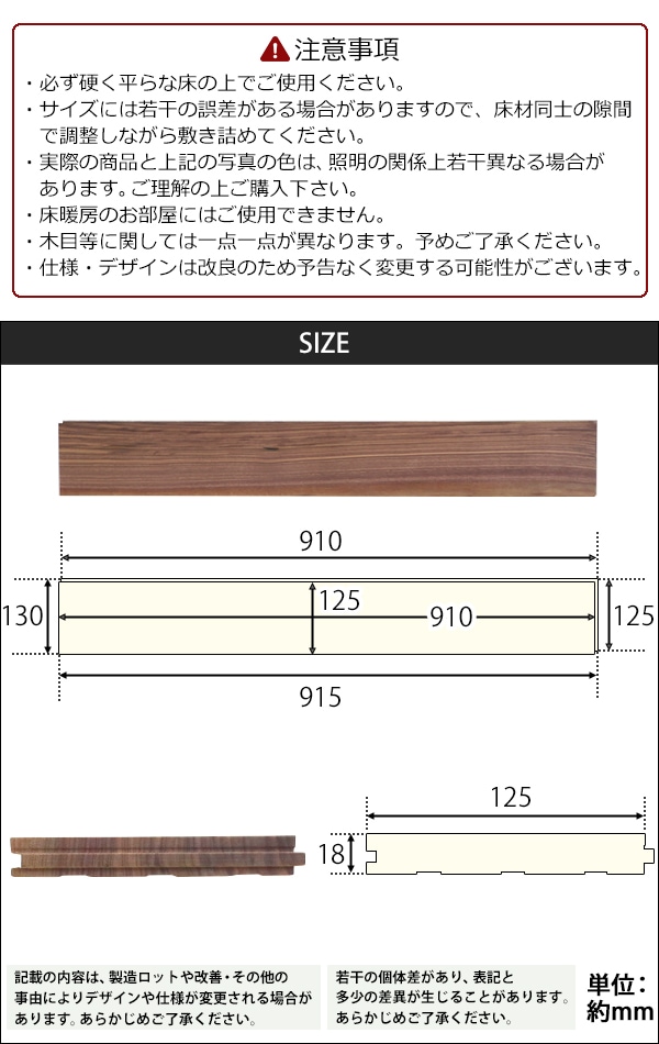 | 本体寸法 | 約W 910×約D 125×約H 18(mm)[1枚あたり] |