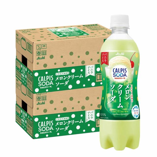 【送料無料】アサヒ カルピスソーダ こだわり素材のメロンクリームソーダ 500ml×2ケース/48本 炭酸飲料 メロンクリーム カルピス