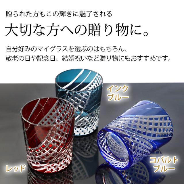 切子 グラス 矢来 280ml レッド コバルトブルー インクブルー 赤 青 食洗機対応 ガラス 切子グラス 酒器 コップ タンブラー ビール 焼酎 日本酒 などに かわいい おしゃれ