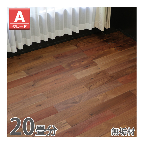 フローリング 床材 アメリカンウォールナット 無垢 Aグレード 定尺 はめ込み 20箱 京間 20畳分 約36.48平米 320枚 約W910×D125×H18mm OSMOオイル 実矧ぎ フロアタイル 低ホルムアルデヒド 床材 無垢材 天然木 貼り替え 張替え 補修 リフォーム diy floorswala20p