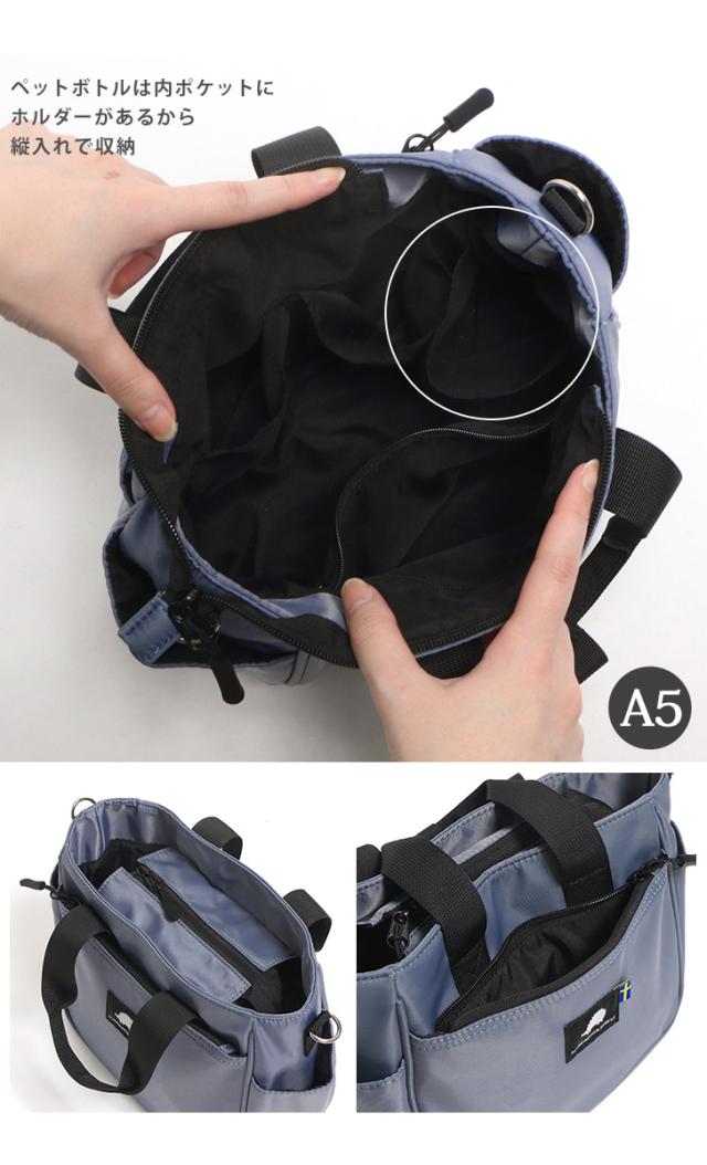 ペットボトルは内ポケットにホルダーがあるから縦入れで収納