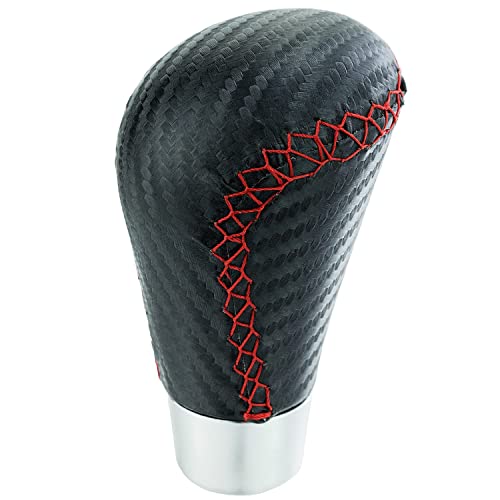 Lunsom R形シフトノブレザーギアシフトノブ汎用オートマニュアルカー (赤ステッチ)