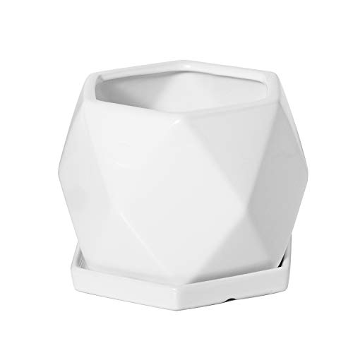 ホワイト 【上質な材質】高品質の陶器で仕上げられで、高級感があります。この白い 植木鉢は耐用性が高いです。六角形のデザインはシンプルながら独特で、北欧風が溢れています。