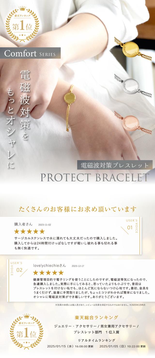電磁波防止ブレスレット PROTECT BRACELET Comfort | 電磁波 電磁波防止 電磁波防止グッズ 電磁波対策 電磁波対策グッズ 電磁波ケア 5G 対策 吸収 ゼロ磁場 健康 ブレスレット アレルギー対応 金属アレルギー サージカルステンレス おしゃれ かわいい 送料無料 日本製