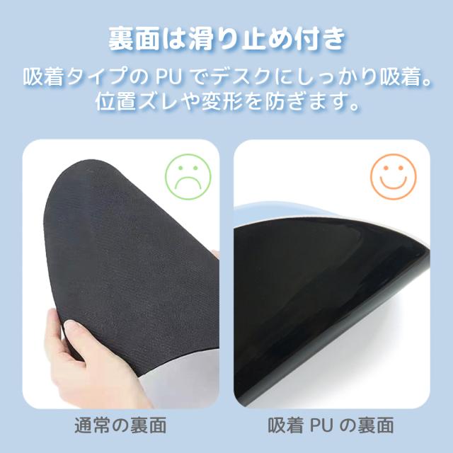 【裏面は滑り止め付き】吸着タイプのPUでデスクにしっかり吸着。位置ズレや変形を防ぎます。
