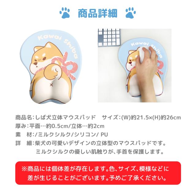 マウスパッド 柴犬 立体 犬 イヌ かわいい おしゃれ リストレスト 手首 おもしろ ぷにぷにジェル inu-pad