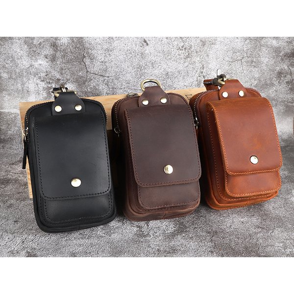 送料コミコミ☆ メンズ 本革 2wayバッグ ブラック/ダークブラウン/ライトブラウン 牛革 ヒップバッグ ウェストポーチ 多機能 【n221】