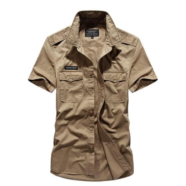 メンズ 半袖 シャツ カーキ M-4XL 半袖 シャツ 春夏【n201】