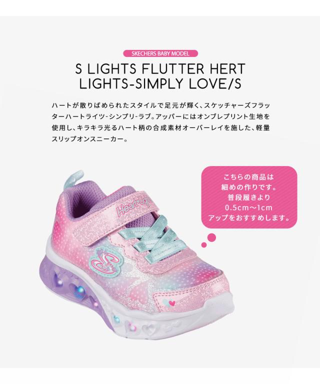 スケッチャーズ ベビースニーカー キッズ 子供靴 女の子 LED 光る靴 マジックテープ ゴム紐 ピンク ハート 誕生日 出産祝い プレゼント SKECHERS フラッターハートライツ シンプリーラブ FLUTTER HERT LIGHTS-SIMPLY LOVE 302315N