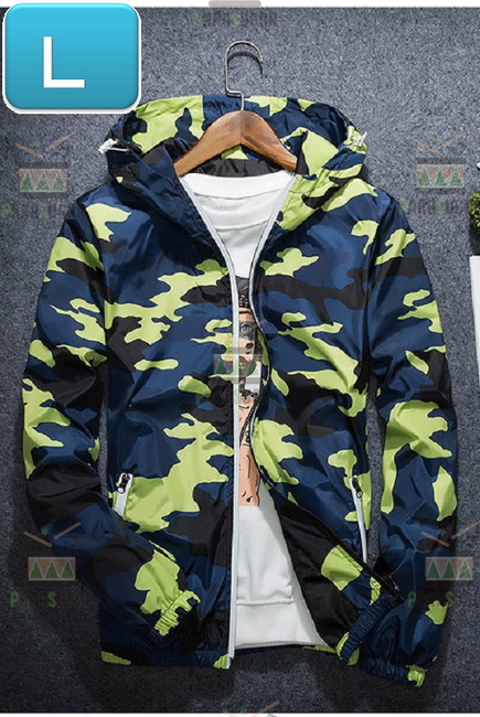 【175】 迷彩 ウィンドブレーカー フード付き イエロー L メンズ ナイロン カモフラ 柄 アウトドア 防風 軽量 ジャケット