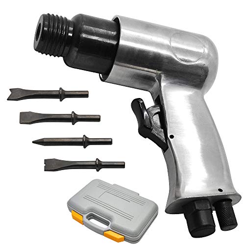UPstore エアーハンマー エアハンマー 強力スプリング チゼル4種類付属 握りやすいグリップとトリガー 専用ケース付き 斫り 剥がし 錆落とし 切断 解体 (SV / シルバー)