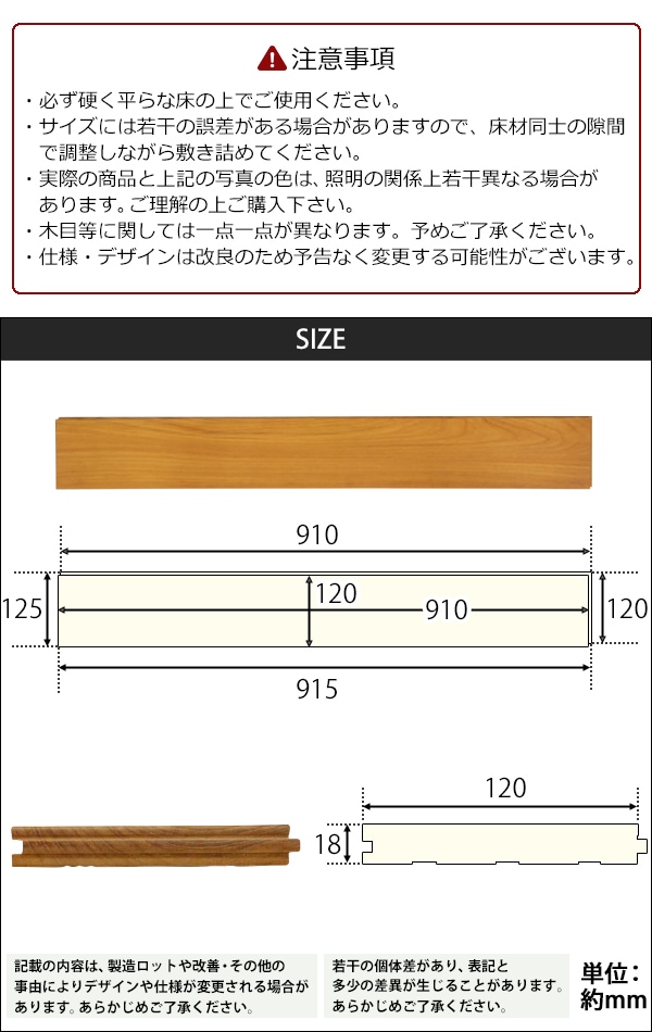 | 本体寸法 | 約W 910×約D 120×約H 18(mm)[1枚あたり] |