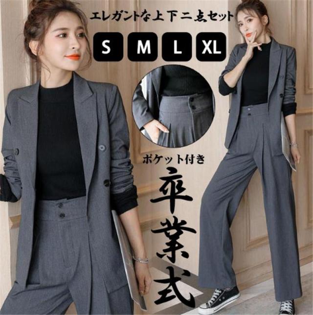 セレモニースーツ レディース 卒業服 2点セット ママスーツ パンツスーツ 無地 カジュアル フォマール 上下セット 入学式 卒園