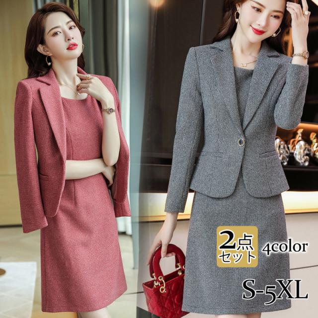 セレモニースーツ レディース ワンピーススーツ 卒業服 2点セット ママスーツ チェック柄 カジュアル フォマール 事務服 入学式