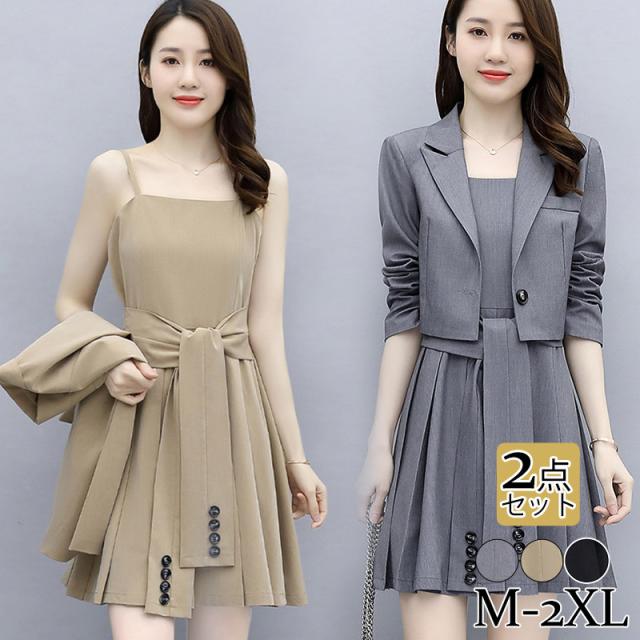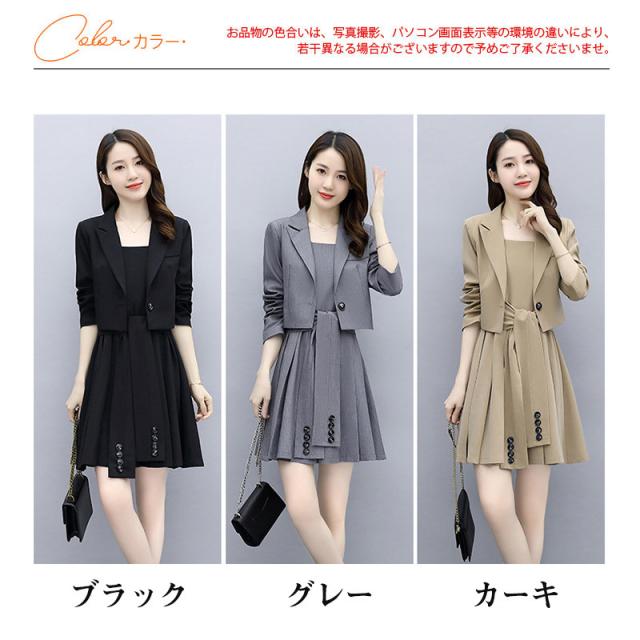 セレモニースーツ レディース 卒業服 2点セット ママスーツ ワンピーススーツ 無地 カジュアル きれいめ フォマール 着痩せ 春