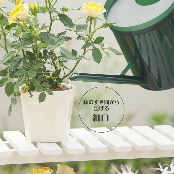 鉢植えへの水やりに鉢植えへの水差しに便利な細口。