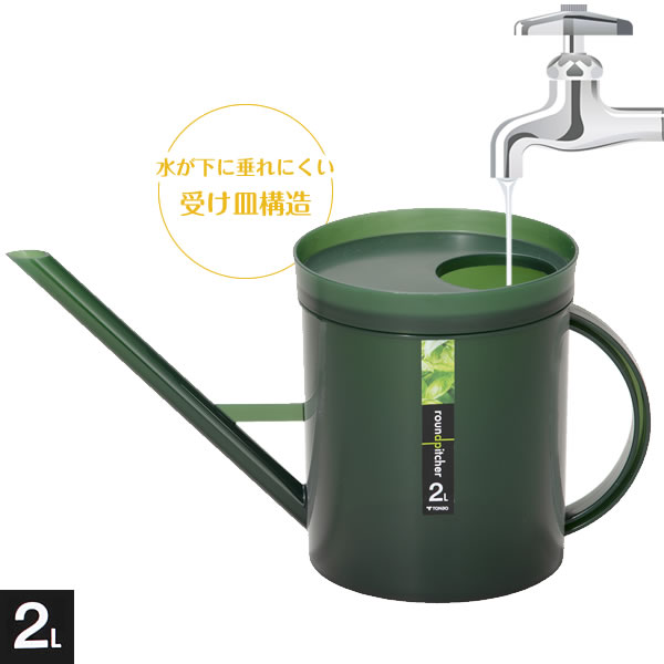 じょうろ ラウンドピッチャー 2L モスグリーン | ジョウロ インドアガーデニング 園芸 室内 水やり 水差し ピッチャー 観葉植物 ベランダ栽培 ジョロ