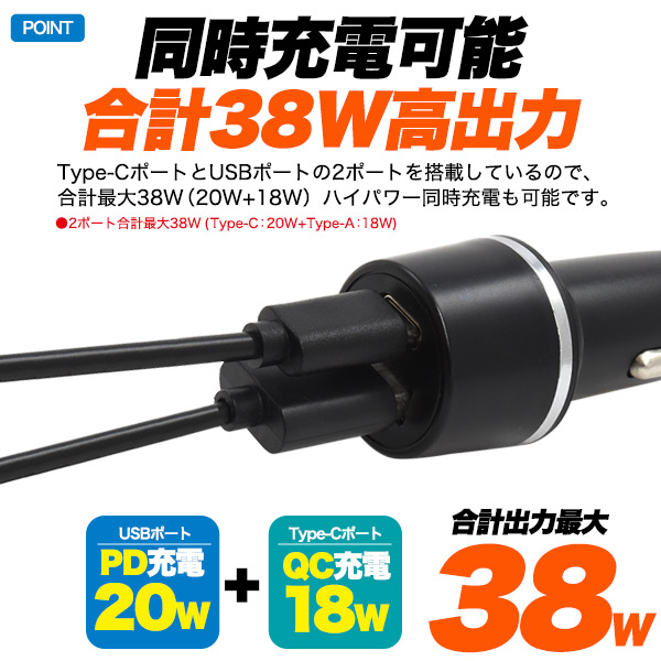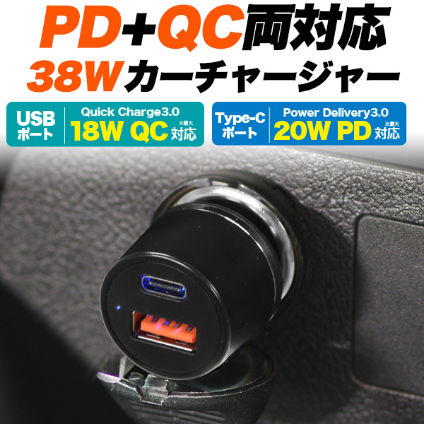 車で超急速充電 カーチャージャー USB PD QC対応 車載用 スマホ iPhone 携帯 充電グッズ 最大出力38W 車載用充電器 トラックでも使用可能 シガーソケット充電 旅行 出張 ドライブ ナビ 動画視聴 長時間運転 運送業 配達 普通自動車 大型車 スマホアクセサリー