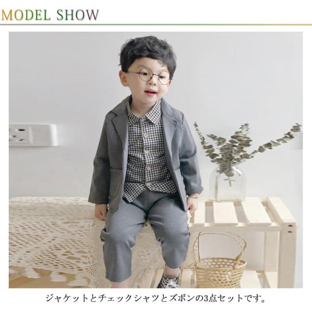 | 韓国風おしゃれなキッズスーツセット。 ジャケットとチェックシャツとズボンの3点セットです。 卒園式や入学式、七五三や結婚式お呼ばれなどで、スーツを着慣れていない小さな男の子も無理なくフォーマルな装いが決まる、おしゃれなスーツセットです。 やんちゃキッズも紳士に変身! ベビーからキッズ入園式や卒園式入学式、七五三などフォーマルシーン彩るオシャレなスーツ。 | |