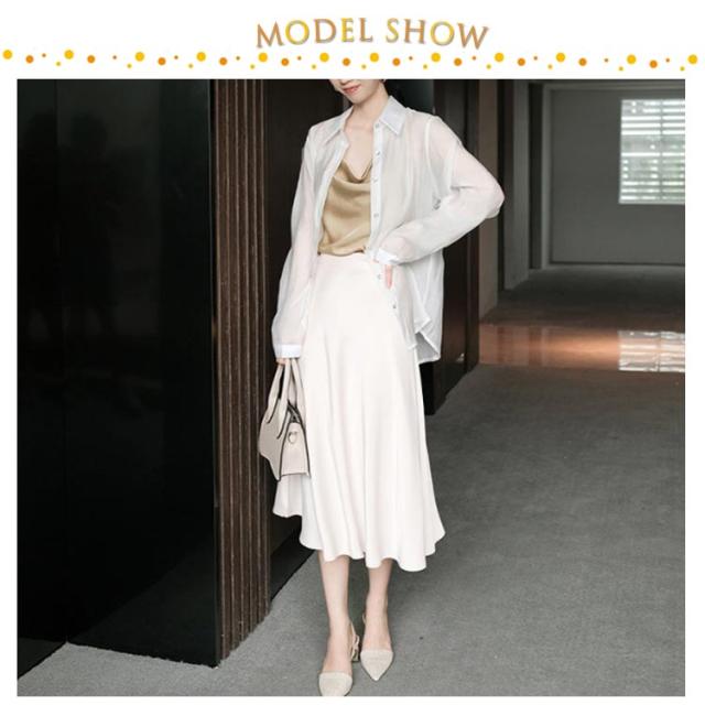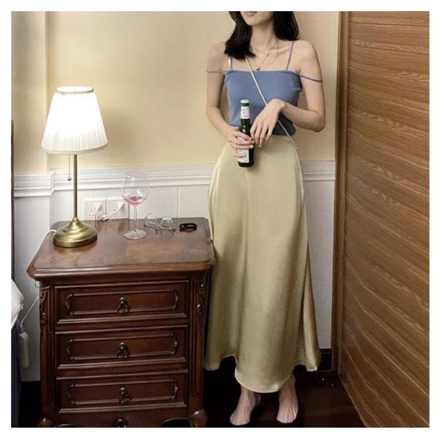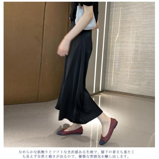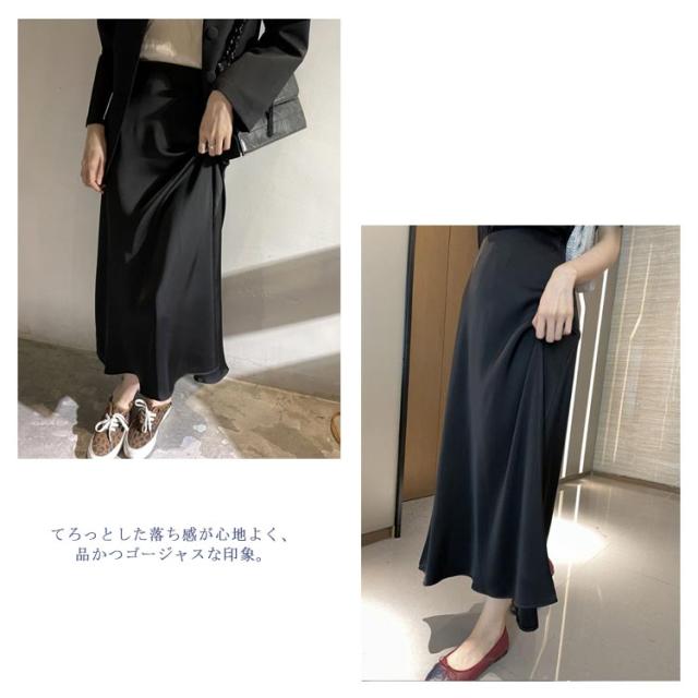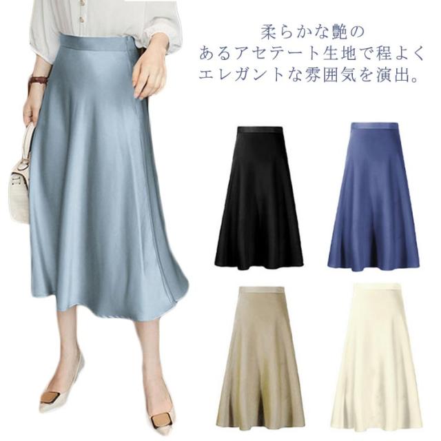 サテンスカート レディース マーメイド 春 ロング 上品 結婚式 フェミニン 送料無料 ウェストゴム ミモレスカート 二次会 パーティー Aライン ハイウエスト 夏 とろみ フレアスカート