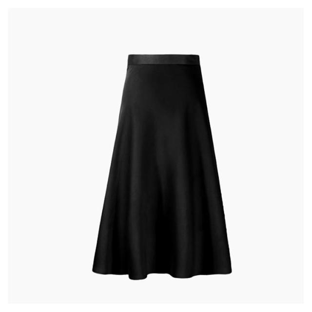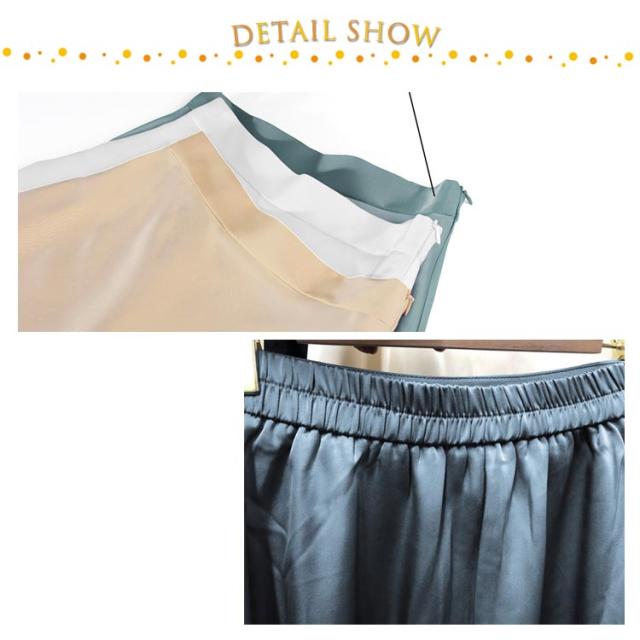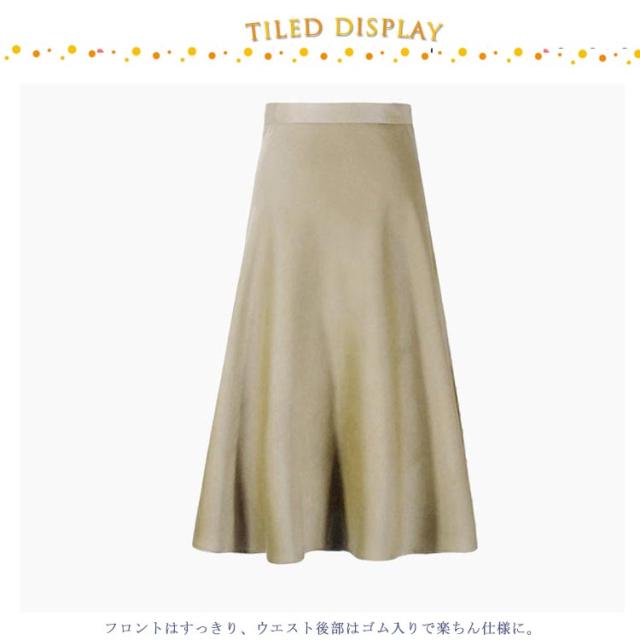 | 柔らかな艶のあるアセテート生地で程よくエレガントな雰囲気を演出。 なめらかな肌触りとソフトな光沢感ある生地で、膝下の着丈も重たくも見えず自然と動きが出るので、優雅な雰囲気を醸し出します。 てろっとした落ち感が心地よく、品かつゴージャスな印象。 フロントはすっきり、ウエスト後部はゴム入りで楽ちん仕様に。 | |