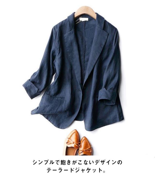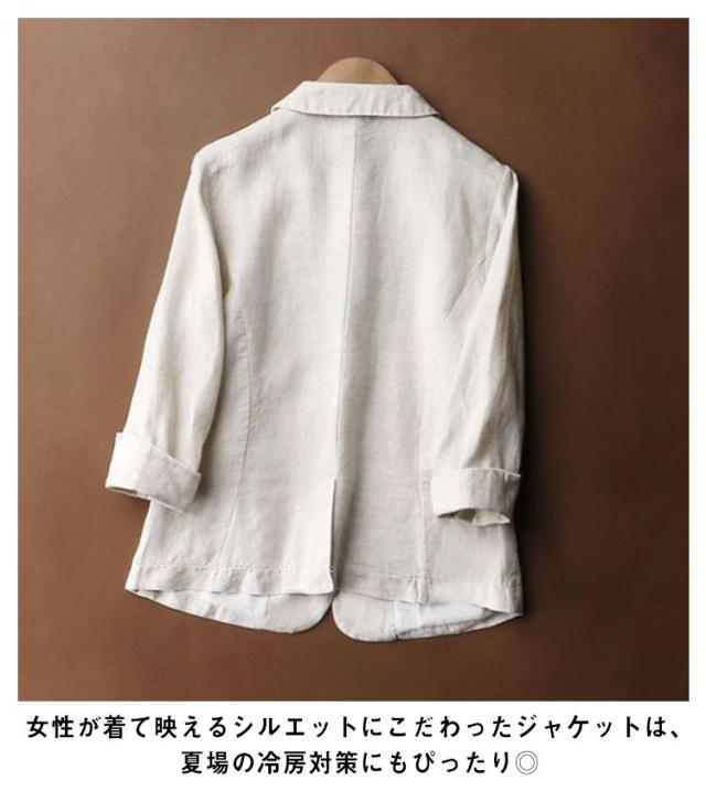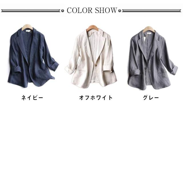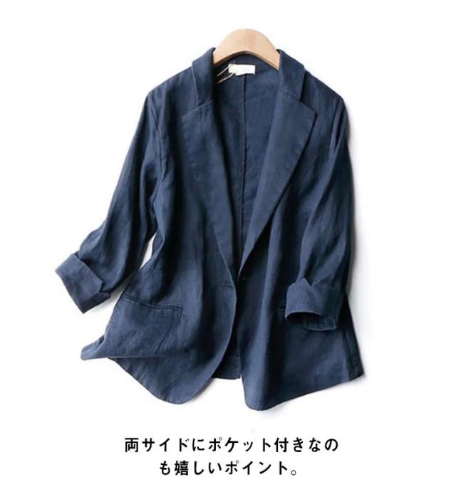 スリムスーツ 綿混 ジャケット レディース カジュアル 7分袖 羽織り 1つボタン リネンジャケット 春アウター テーラードジャケット リネン オフィス サマー 洗える 春 夏 テーラードジャケット