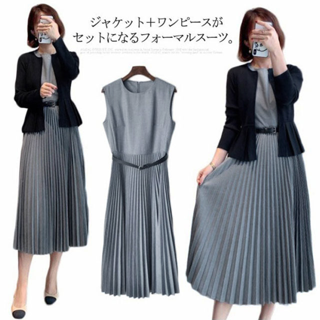 フォーマルスーツ 上品 レディース 2点セット ママスーツ プリーツワンピース スーツ 結婚式 母親 入学式 卒業式 ワンピーススーツ セットアップ 七五三 お宮参り セレモニースーツ 参観日 黒 母 女性 服装 オフィス 通勤 フォーマル カジュアル ジャケット