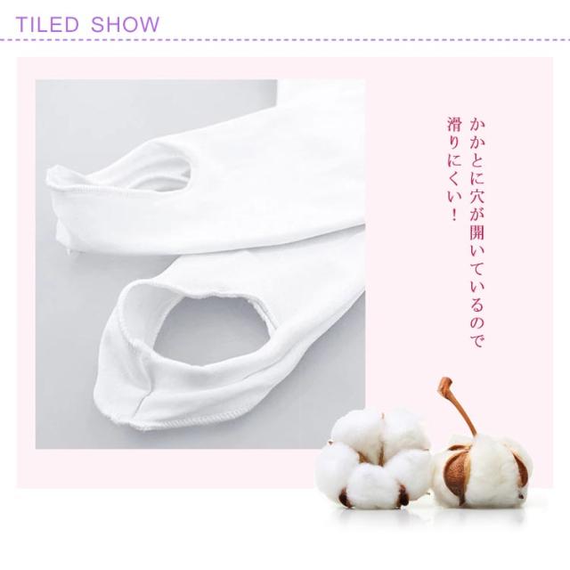 | かかとに穴ありのフットレスタイツ 大変ソフトで肌に優しい素材がストレッチも効いてぴったり脚にフィットします。 かかとに穴が開いているので滑りにくい! シンプルのブラックとホワイトなので、どんなレオタードにも合いますよ。 普段着にレギンスとして履いてもOK! バレエだけでなく、体操や新体操やダンスなどのレッスンにも最適。 | |
