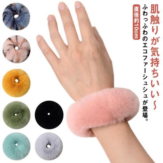 まとめ髪 ファーシュシュ エコファー ヘアアレンジ しゅしゅ ヘアゴム 髪留め レディース ボリュームアップ ファーボール ヘアアレンジ 直径約10cm ヘアアクセサリー 髪飾り 可愛い ファッション小物 選べる20色