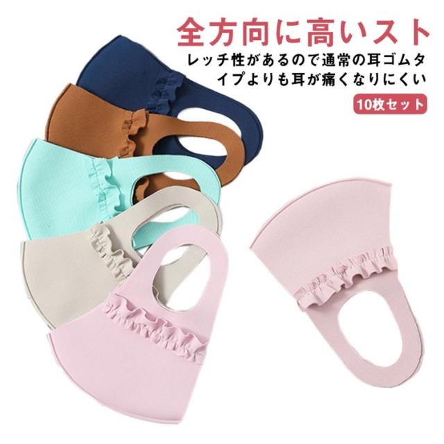 UVカット 冷感 レディース マスク 快適 10枚セット クールマスク アイス UPF50+ フリル付き 立体マスク 立体 紫外線対策 冷感マスク 日差し対策 花粉対策 洗える 3D 速乾 吸汗 耳が痛くない 10枚セット 蒸れにくい アイスシルク