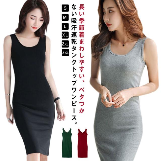吸汗速乾 ロングワンピース 吸汗通気 無地 インナーワンピース 膝丈 タンクトップワンピ インナー 部屋着 透けない 快適 柔らかい ルームウエア