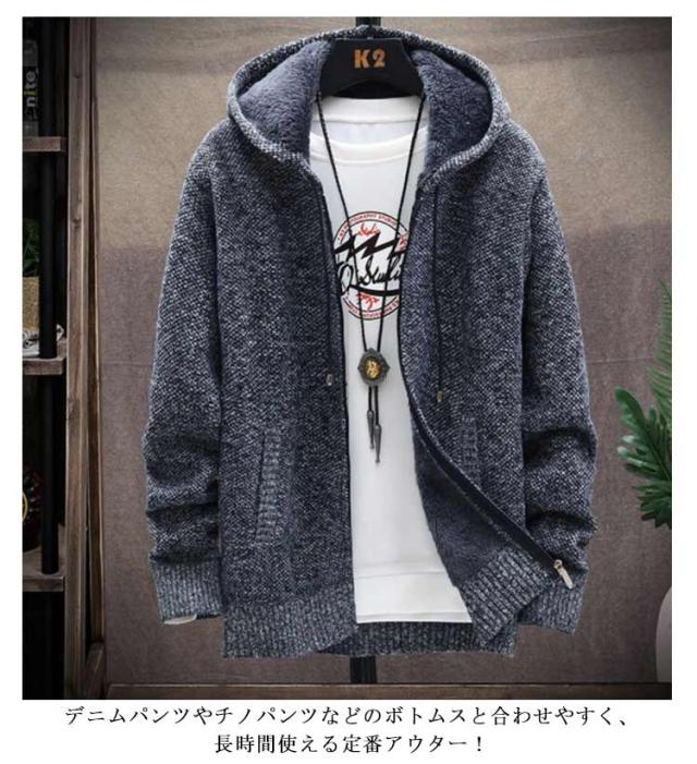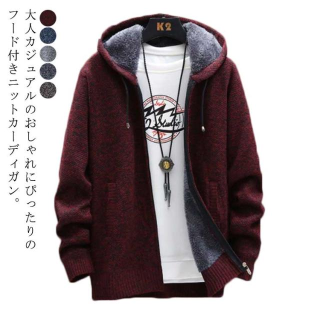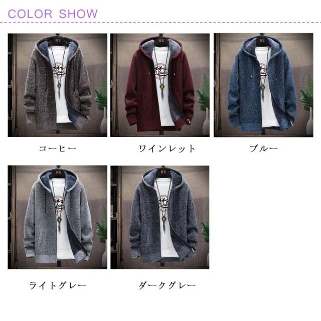 ニットカーディガン 春 メンズ 裏ボアカーディガン 裏ボアジャケット コート 全5色×6サイズ メンズ コーディガン フード付き 厚手 アウター ジャケット 裏起毛 秋服 秋物 秋 裏ボア