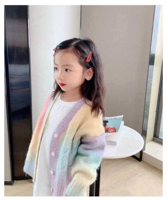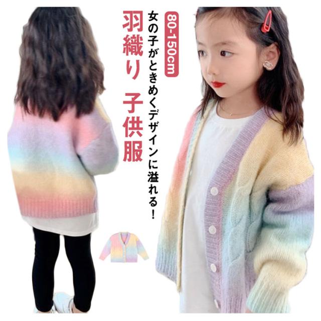 女の子 子供服 トップス 100 アウター カジュアル ニット セーター キッズ 羽織り カーデ レインボー vネック カラフル 長袖 夏 かわいい おしゃれ 春 秋 おしゃれ 120 90 80 110 130 150cm カーディガン