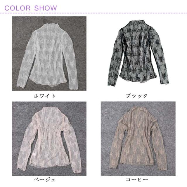 シースルー トップス ハイネック ブラウス 透け 透け感 肌見せ インナー レース シースルー シースルーブラウス 長袖 セクシー 大人 シアー 黒 ブラック 白 ホワイト 大きいサイズ 春 夏 秋