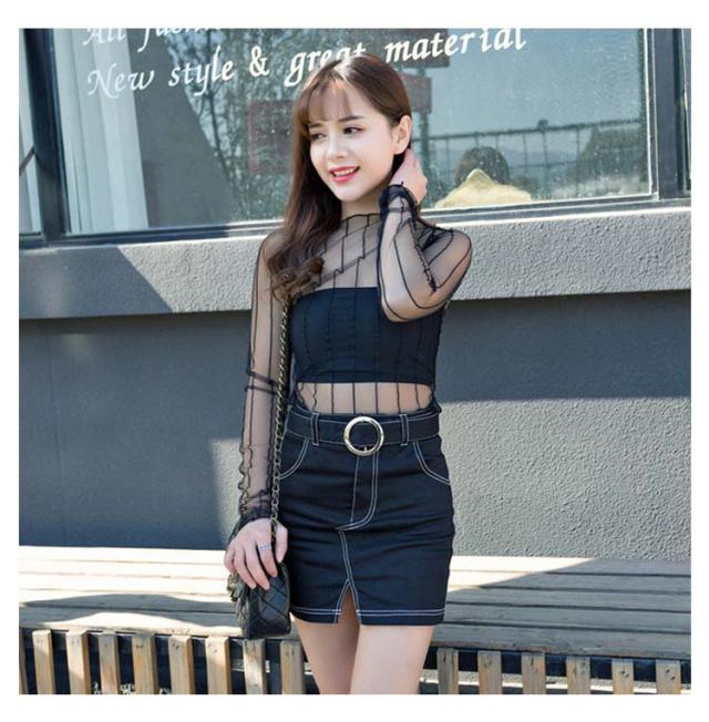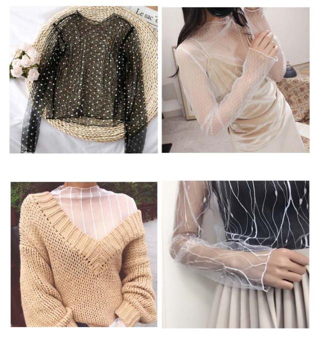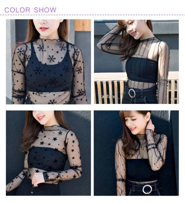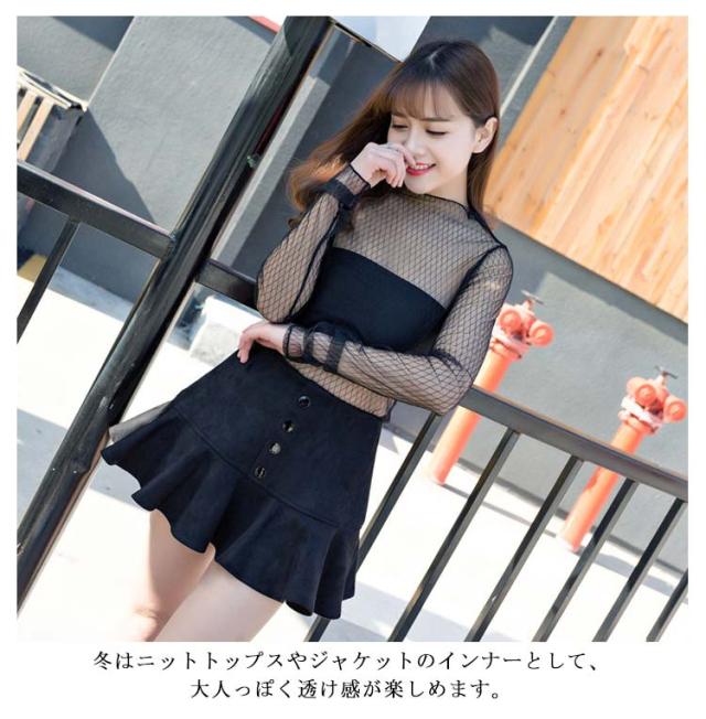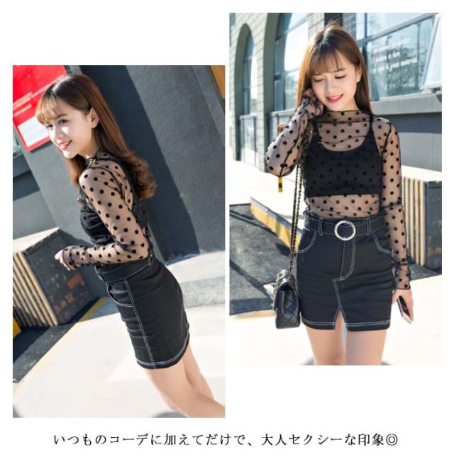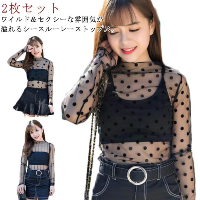 40代 清楚な大人の肌見せスタイル♪トップス トップス 柄 ブラック+ホワイト各1枚 通勤 ハイネック 2枚セット カットソー 長袖 フェミニン 卒園式 無地 透け感 春 シアー かわいい シースルー 入園式 OL 卒業式 20代 30代 レディース