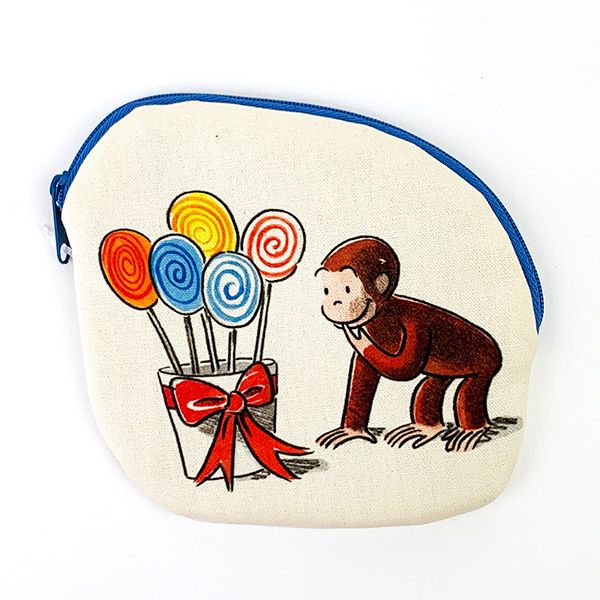 おさるのジョージ ダイカットフラット ポーチ ブルー 小物入れ 化粧品入れ 学校 オフィス
