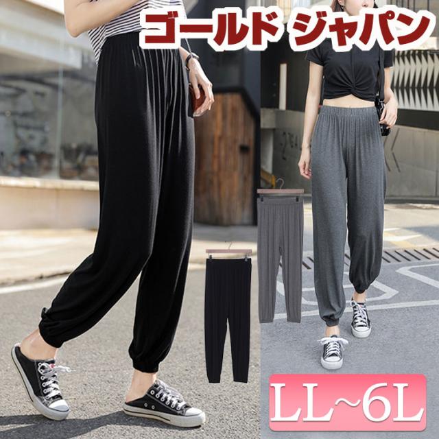 春新作 大きいサイズ レディース ボトムス パンツ テーパードパンツ ロングパンツ ジョガーパンツ スウェットパンツ スウェット ストレッチ ウエストゴム 無地 ロング ギャザー バルーン ルームウェア 韓国 秋服 春服 冬服 LL 2L 3L 4L 5L 6L ブラック 黒 ゴールドジャパン