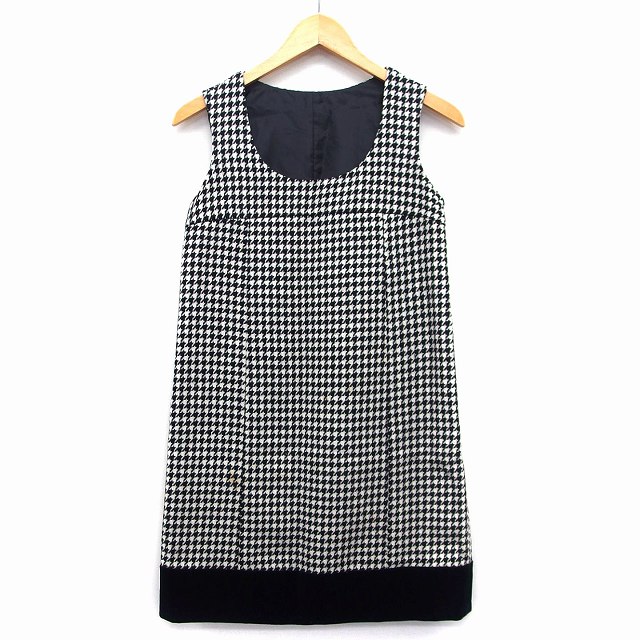 【中古】シェロー chereaux ジャンパースカート ワンピース 膝丈 千鳥格子 柄 丸首 切替 ベロア ウール混 38 ブラック
