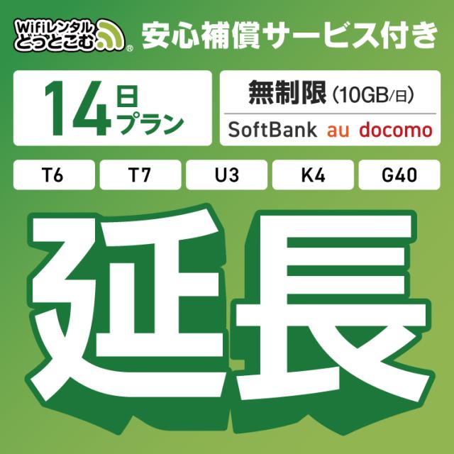 【延長専用】 安心補償付き wifi レンタル 14日 T7 U3 T6300 GW01300 ルーター wi-fi ポケットwifi