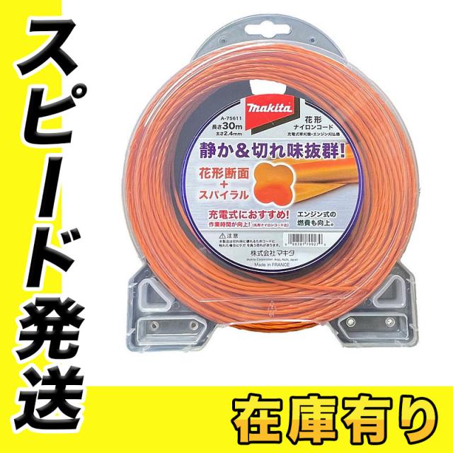 マキタ A-75611 花形ナイロンコード 花形断面2.4mm径×30m オレンジ (草刈り機・刈払機用予備ナイロンコード)